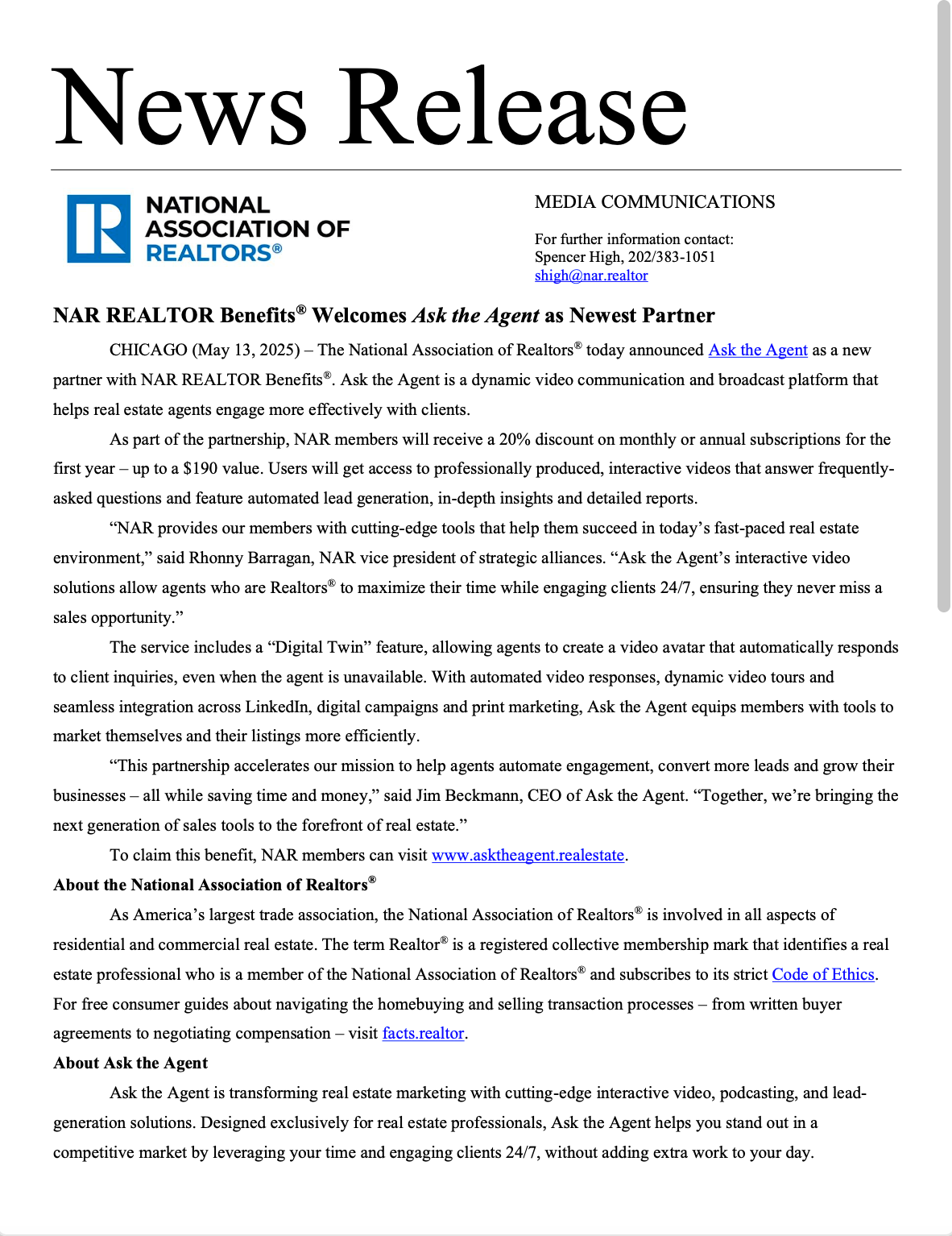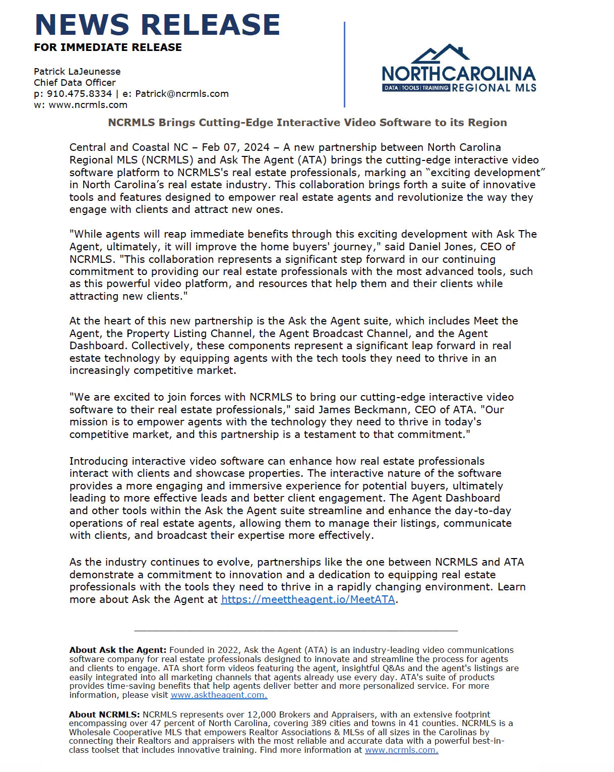 NCRMLS partners with Ask the Agent to brings cutting-edge interactive video to real estate professionals.
