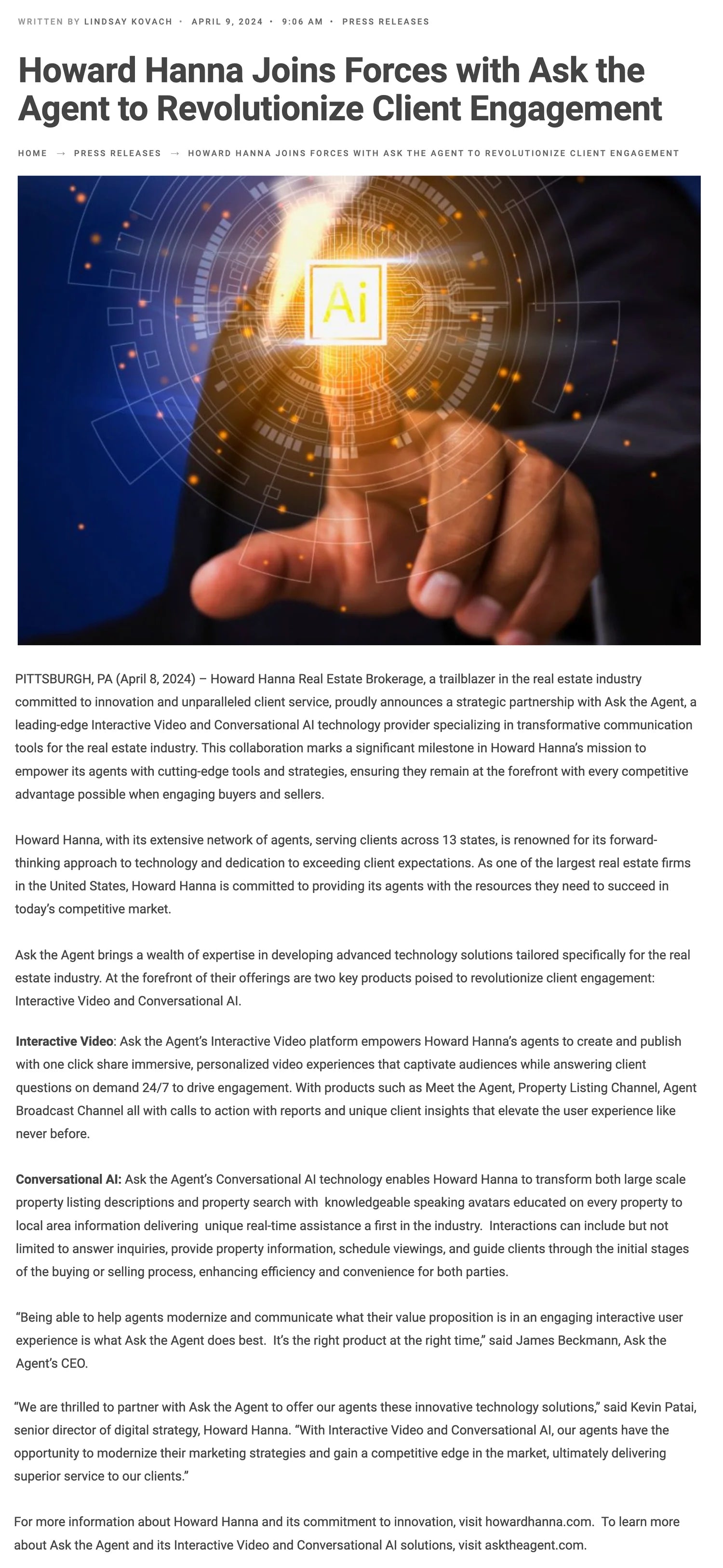 Howard Hanna Joins Forces with Ask the Agent to Revolutionize Client Engagement